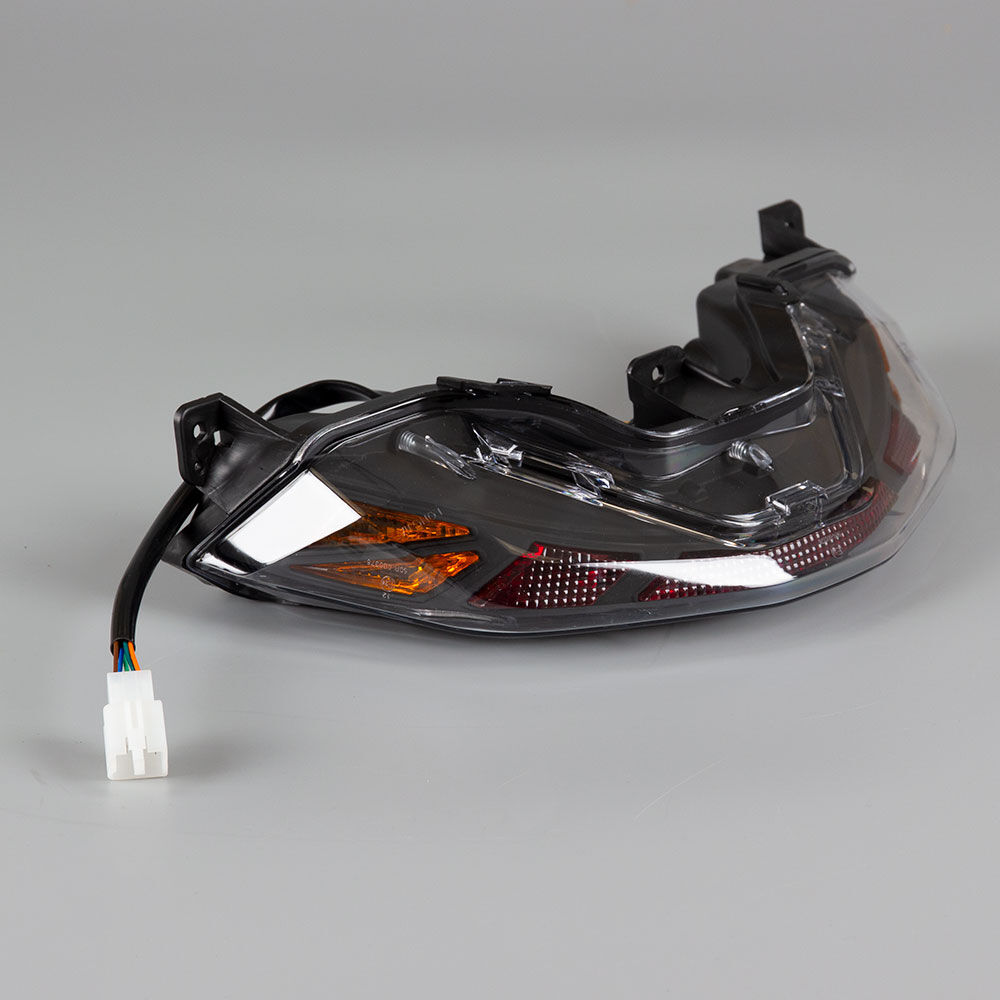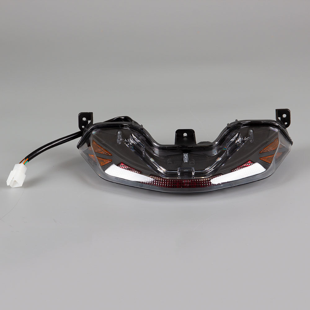The tail light on a motorcycle is a rear-mounted light that signals the presence and braking actions of the rider to other drivers. It enhances visibility and safety by illuminating the rear of the motorcycle. Typically featuring LED or bulb lighting, the tail light is designed for durability and effective illumination in various riding conditions.