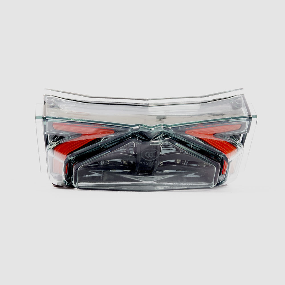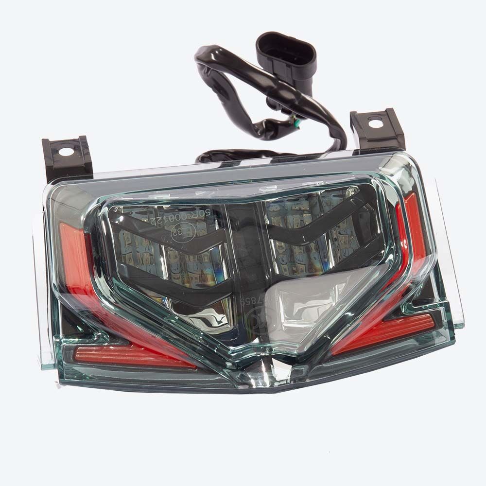 The tail light on a motorcycle is a rear-mounted light that signals the presence and braking actions of the rider to other drivers. It enhances visibility and safety by illuminating the rear of the motorcycle. Typically featuring LED or bulb lighting, the tail light is designed for durability and effective illumination in various riding conditions.