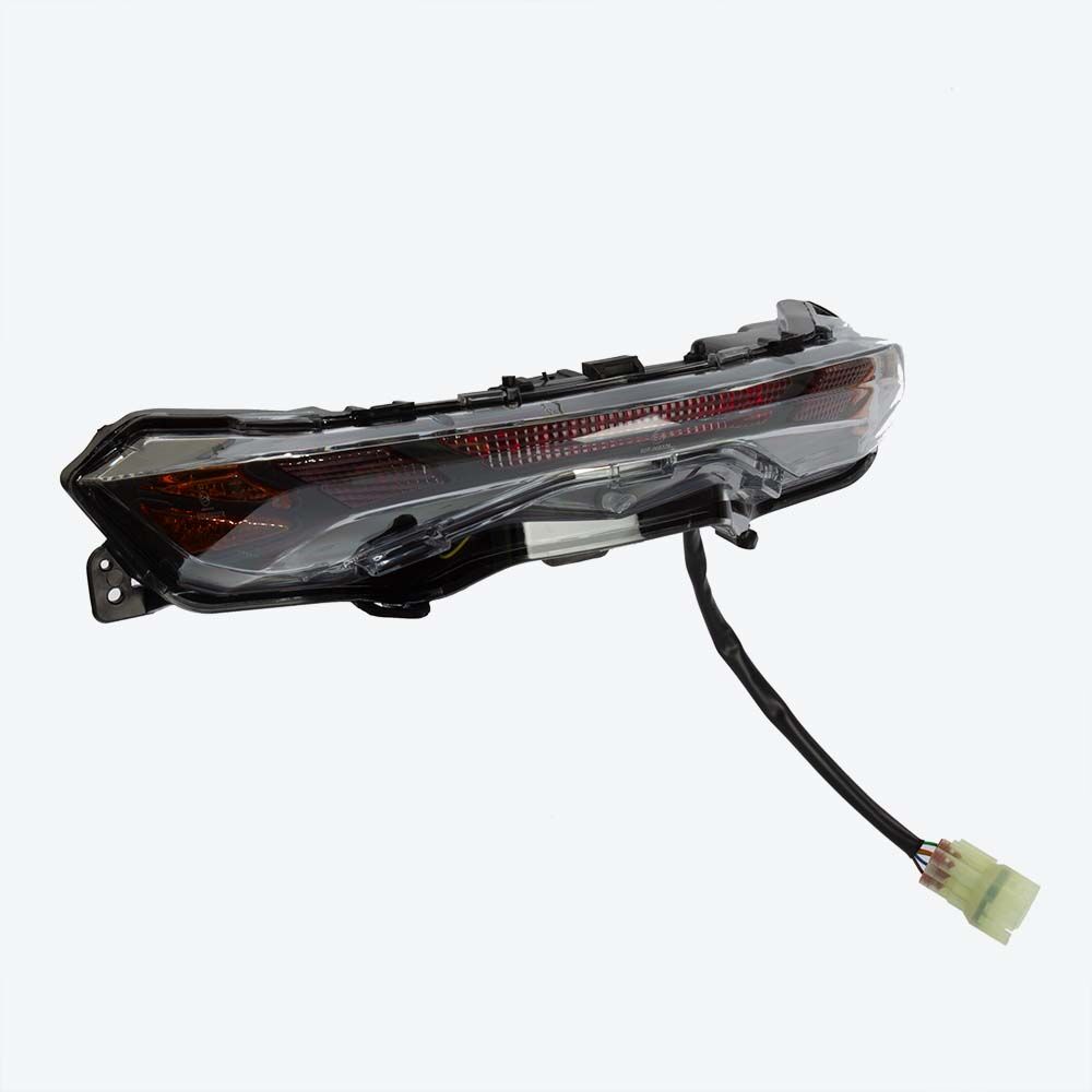 The tail light on a motorcycle is a rear-mounted light that signals the presence and braking actions of the rider to other drivers. It enhances visibility and safety by illuminating the rear of the motorcycle. Typically featuring LED or bulb lighting, the tail light is designed for durability and effective illumination in various riding conditions.