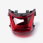 The tail light on a motorcycle is a rear-mounted light that signals the presence and braking actions of the rider to other drivers. It enhances visibility and safety by illuminating the rear of the motorcycle. Typically featuring LED or bulb lighting, the tail light is designed for durability and effective illumination in various riding conditions.