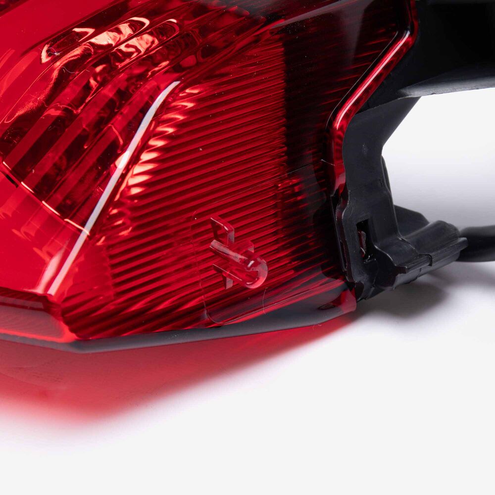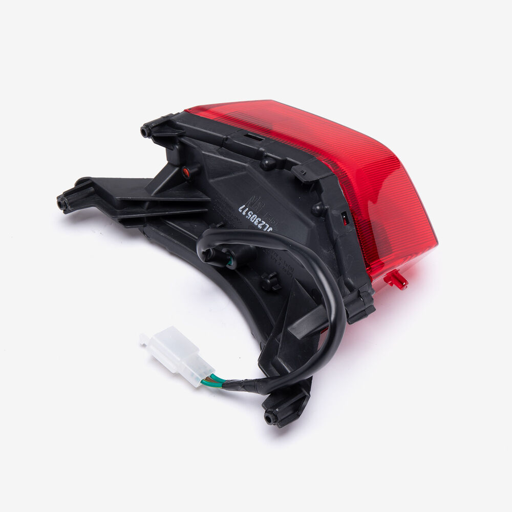 The tail light on a motorcycle is a rear-mounted light that signals the presence and braking actions of the rider to other drivers. It enhances visibility and safety by illuminating the rear of the motorcycle. Typically featuring LED or bulb lighting, the tail light is designed for durability and effective illumination in various riding conditions.