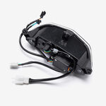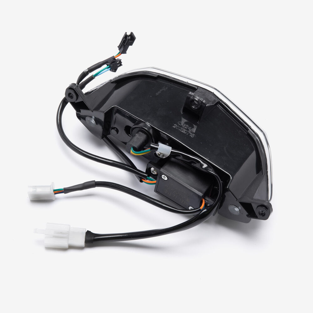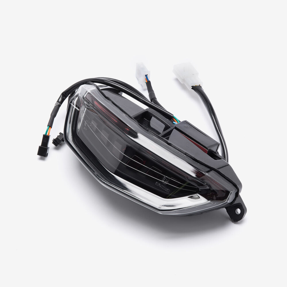 The tail light on a motorcycle is a rear-mounted light that signals the presence and braking actions of the rider to other drivers. It enhances visibility and safety by illuminating the rear of the motorcycle. Typically featuring LED or bulb lighting, the tail light is designed for durability and effective illumination in various riding conditions.