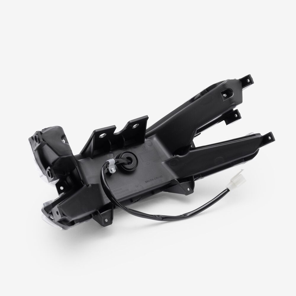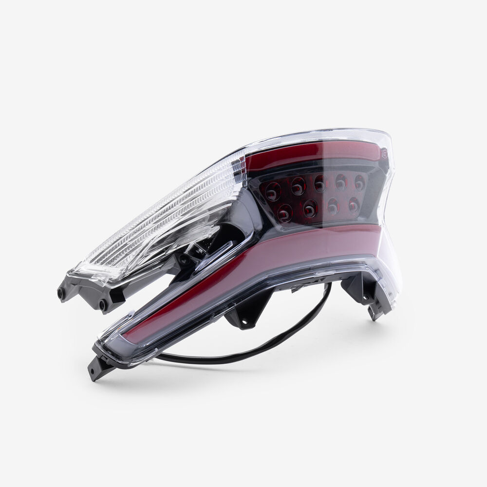 The tail light on a motorcycle is a rear-mounted light that signals the presence and braking actions of the rider to other drivers. It enhances visibility and safety by illuminating the rear of the motorcycle. Typically featuring LED or bulb lighting, the tail light is designed for durability and effective illumination in various riding conditions.