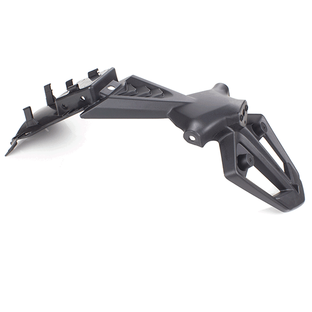The mudguard bracket on a motorcycle is a support component that secures the mudguard to the motorcycle’s frame or fork. It ensures the mudguard remains in place and properly aligned, providing stability and durability.