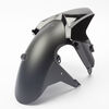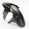 The front mudguard on a motorcycle is a panel mounted above the front wheel to protect the bike and rider from mud, water, and debris. It helps keep the front of the motorcycle cleaner and enhances rider safety by reducing the amount of spray. Made from materials like plastic or metal, the front mudguard is designed to endure road conditions and impacts.