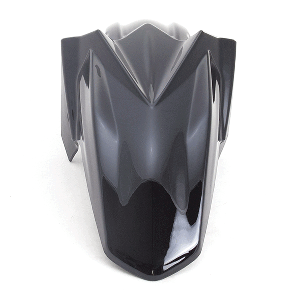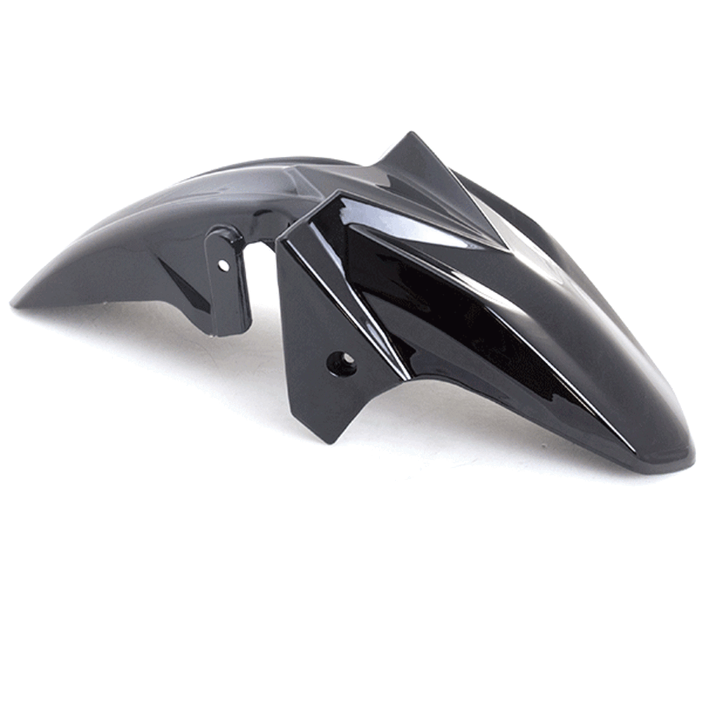 The front mudguard on a motorcycle is a panel mounted above the front wheel to protect the bike and rider from mud, water, and debris. It helps keep the front of the motorcycle cleaner and enhances rider safety by reducing the amount of spray. Made from materials like plastic or metal, the front mudguard is designed to endure road conditions and impacts.