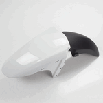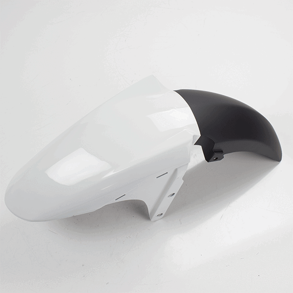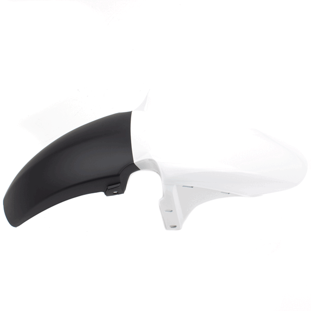 The front mudguard on a motorcycle is a panel mounted above the front wheel to protect the bike and rider from mud, water, and debris. It helps keep the front of the motorcycle cleaner and enhances rider safety by reducing the amount of spray. Made from materials like plastic or metal, the front mudguard is designed to endure road conditions and impacts.
