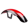 The front mudguard on a motorcycle is a panel mounted above the front wheel to protect the bike and rider from mud, water, and debris. It helps keep the front of the motorcycle cleaner and enhances rider safety by reducing the amount of spray. Made from materials like plastic or metal, the front mudguard is designed to endure road conditions and impacts.
