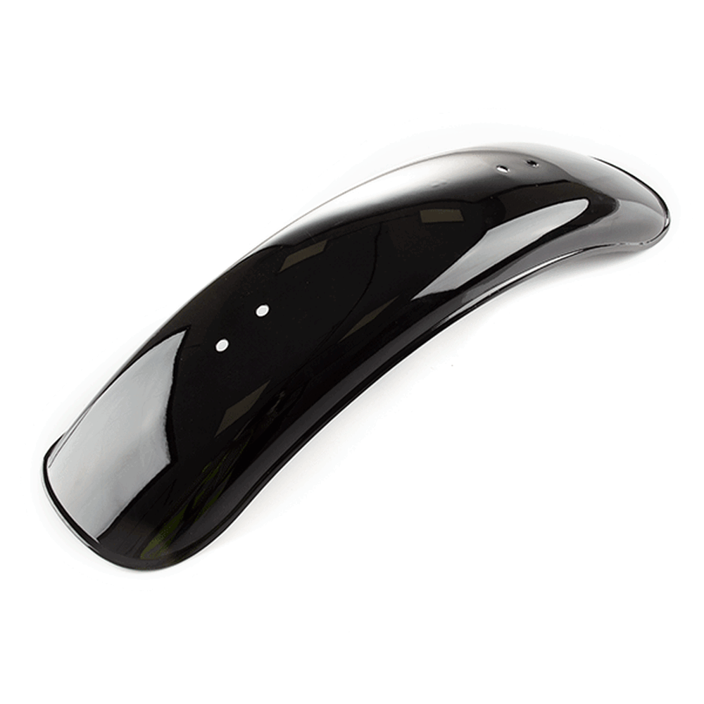 The front mudguard on a motorcycle is a panel mounted above the front wheel to protect the bike and rider from mud, water, and debris. It helps keep the front of the motorcycle cleaner and enhances rider safety by reducing the amount of spray. Made from materials like plastic or metal, the front mudguard is designed to endure road conditions and impacts.