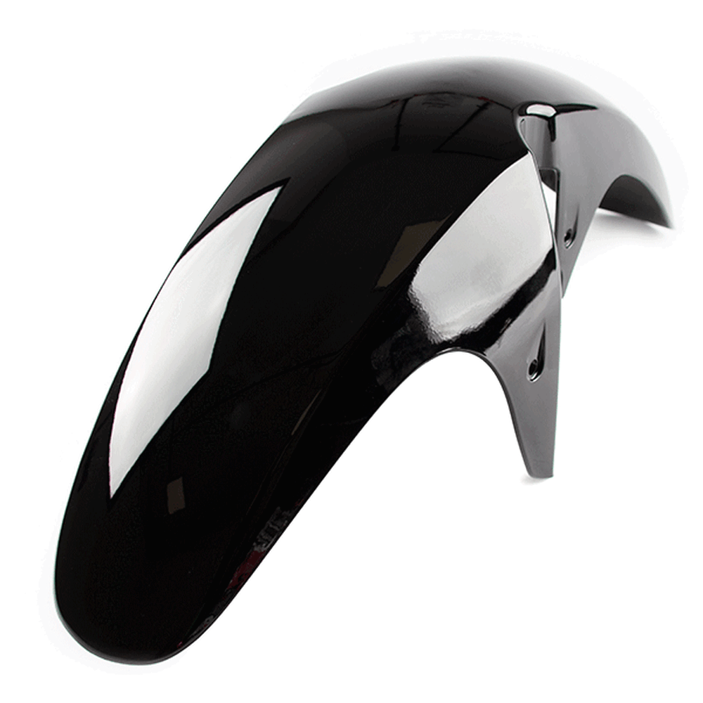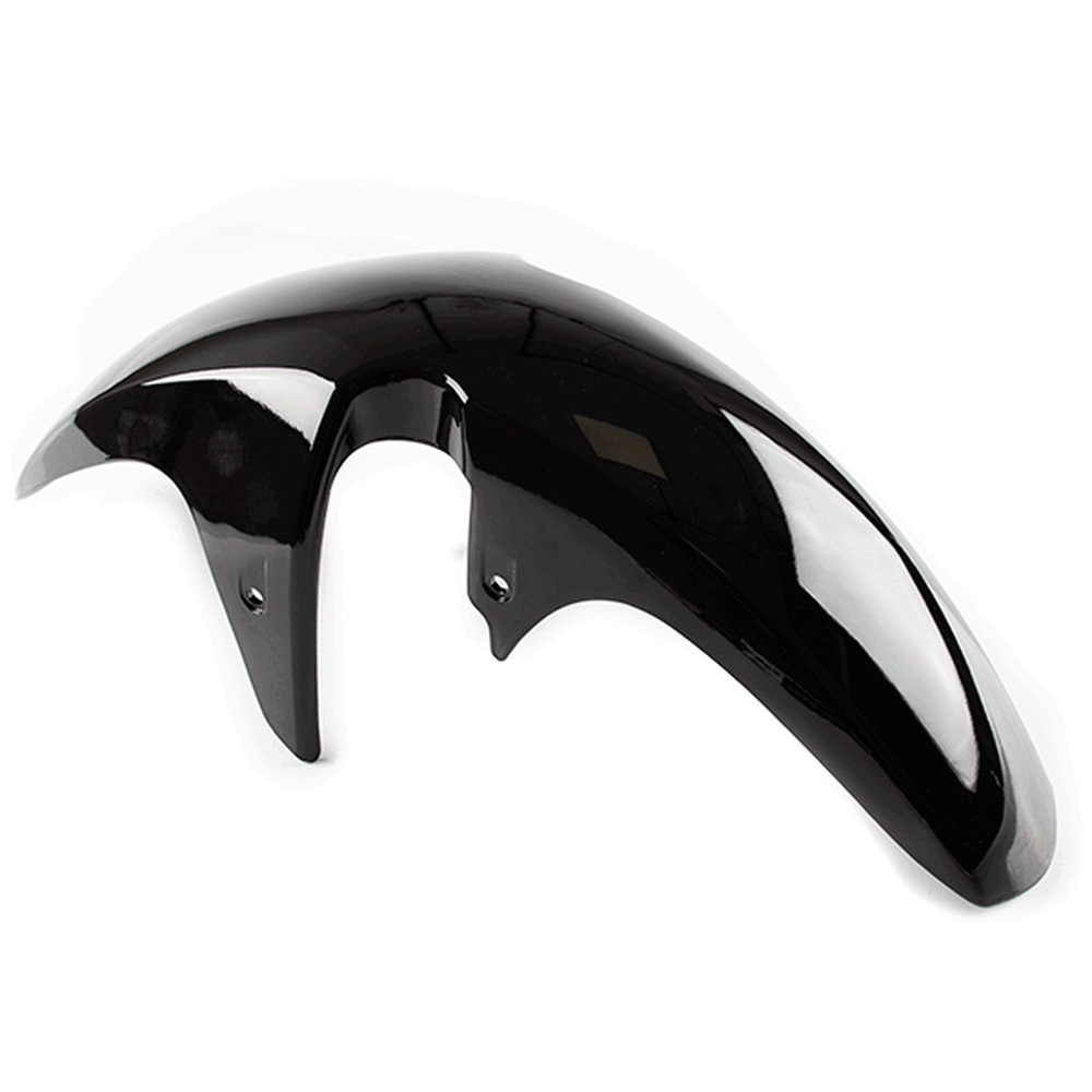 The front mudguard on a motorcycle is a panel mounted above the front wheel to protect the bike and rider from mud, water, and debris. It helps keep the front of the motorcycle cleaner and enhances rider safety by reducing the amount of spray. Made from materials like plastic or metal, the front mudguard is designed to endure road conditions and impacts.