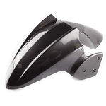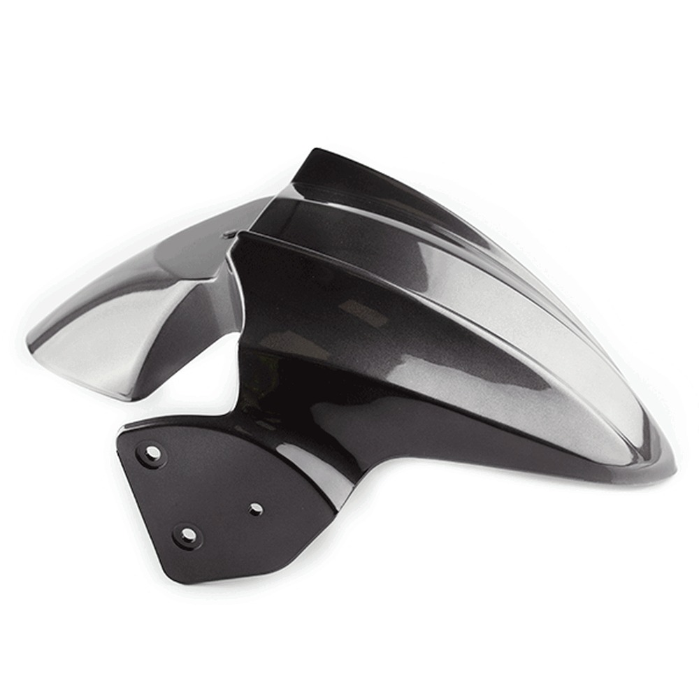 The front mudguard on a motorcycle is a panel mounted above the front wheel to protect the bike and rider from mud, water, and debris. It helps keep the front of the motorcycle cleaner and enhances rider safety by reducing the amount of spray. Made from materials like plastic or metal, the front mudguard is designed to endure road conditions and impacts.