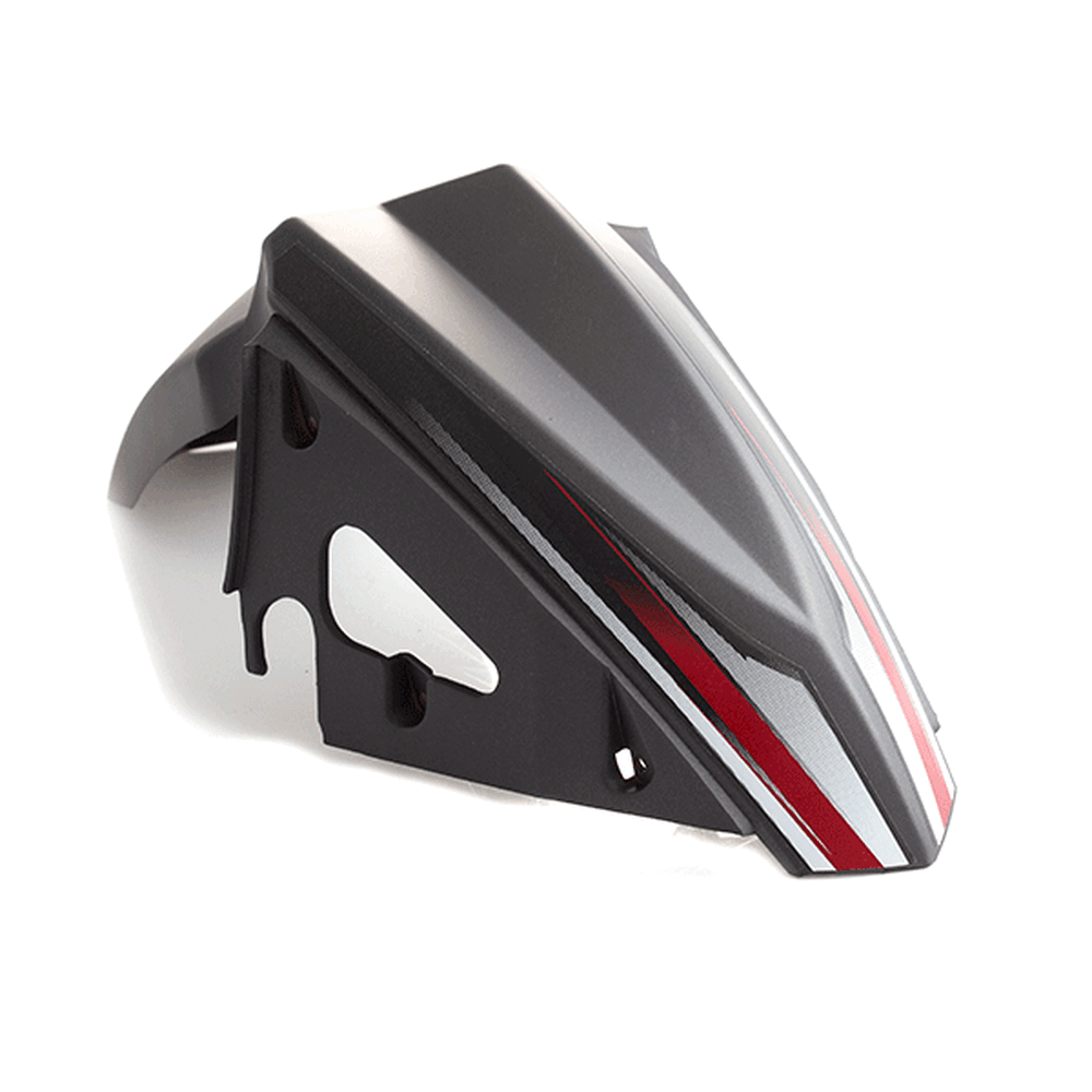 The front mudguard on a motorcycle is a panel mounted above the front wheel to protect the bike and rider from mud, water, and debris. It helps keep the front of the motorcycle cleaner and enhances rider safety by reducing the amount of spray. Made from materials like plastic or metal, the front mudguard is designed to endure road conditions and impacts.
