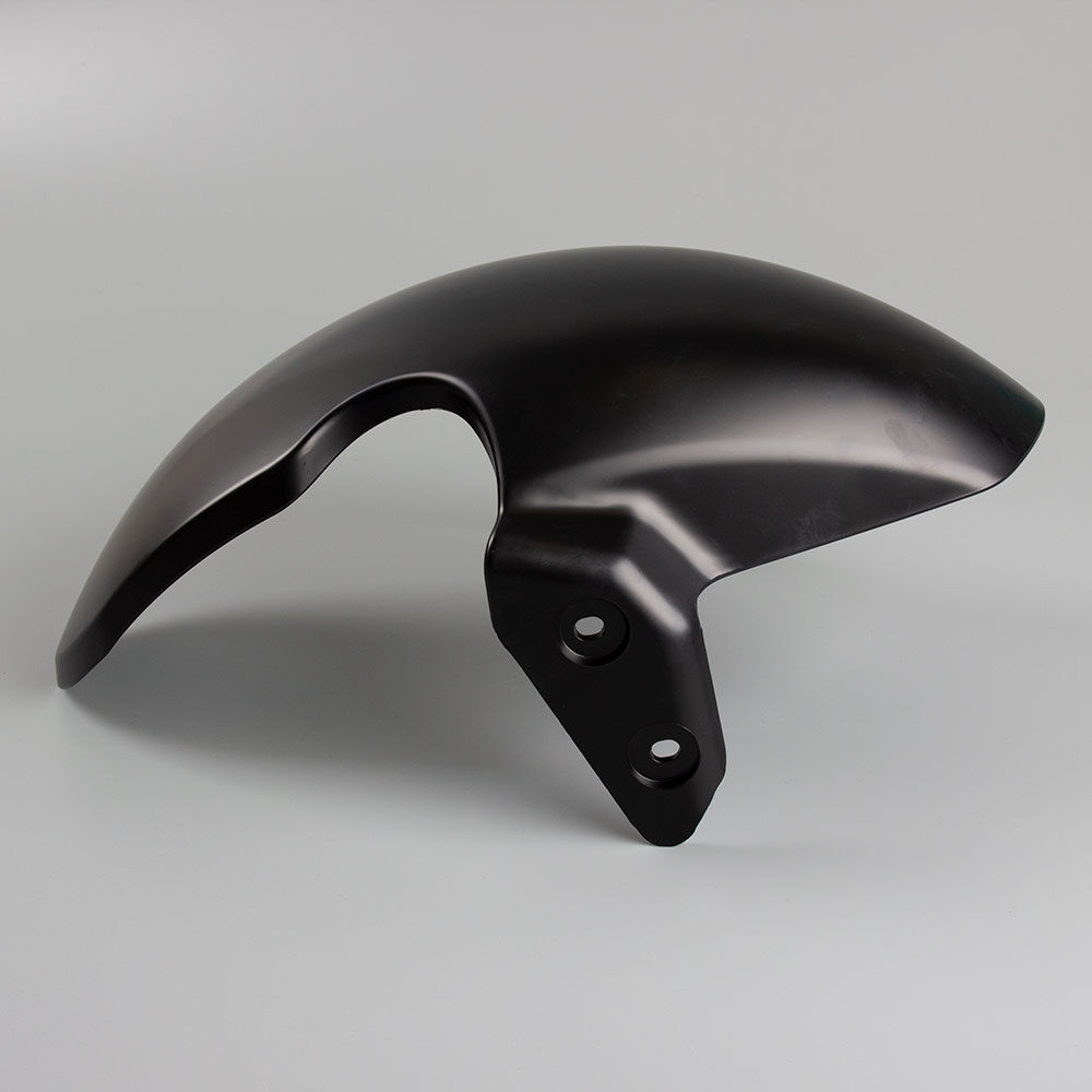 The front mudguard on a motorcycle is a panel mounted above the front wheel to protect the bike and rider from mud, water, and debris. It helps keep the front of the motorcycle cleaner and enhances rider safety by reducing the amount of spray. Made from materials like plastic or metal, the front mudguard is designed to endure road conditions and impacts.