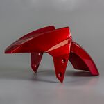 The front mudguard on a motorcycle is a panel mounted above the front wheel to protect the bike and rider from mud, water, and debris. It helps keep the front of the motorcycle cleaner and enhances rider safety by reducing the amount of spray. Made from materials like plastic or metal, the front mudguard is designed to endure road conditions and impacts.