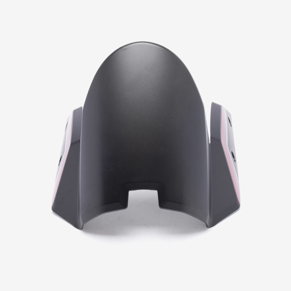 The front mudguard on a motorcycle is a panel mounted above the front wheel to protect the bike and rider from mud, water, and debris. It helps keep the front of the motorcycle cleaner and enhances rider safety by reducing the amount of spray. Made from materials like plastic or metal, the front mudguard is designed to endure road conditions and impacts.