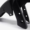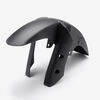 The front mudguard on a motorcycle is a panel mounted above the front wheel to protect the bike and rider from mud, water, and debris. It helps keep the front of the motorcycle cleaner and enhances rider safety by reducing the amount of spray. Made from materials like plastic or metal, the front mudguard is designed to endure road conditions and impacts.