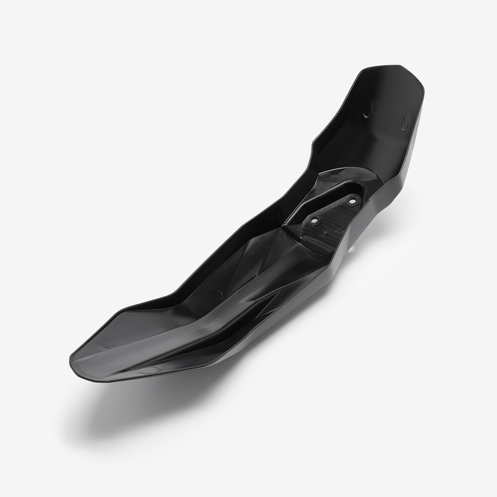 The front mudguard on a motorcycle is a panel mounted above the front wheel to protect the bike and rider from mud, water, and debris. It helps keep the front of the motorcycle cleaner and enhances rider safety by reducing the amount of spray. Made from materials like plastic or metal, the front mudguard is designed to endure road conditions and impacts.