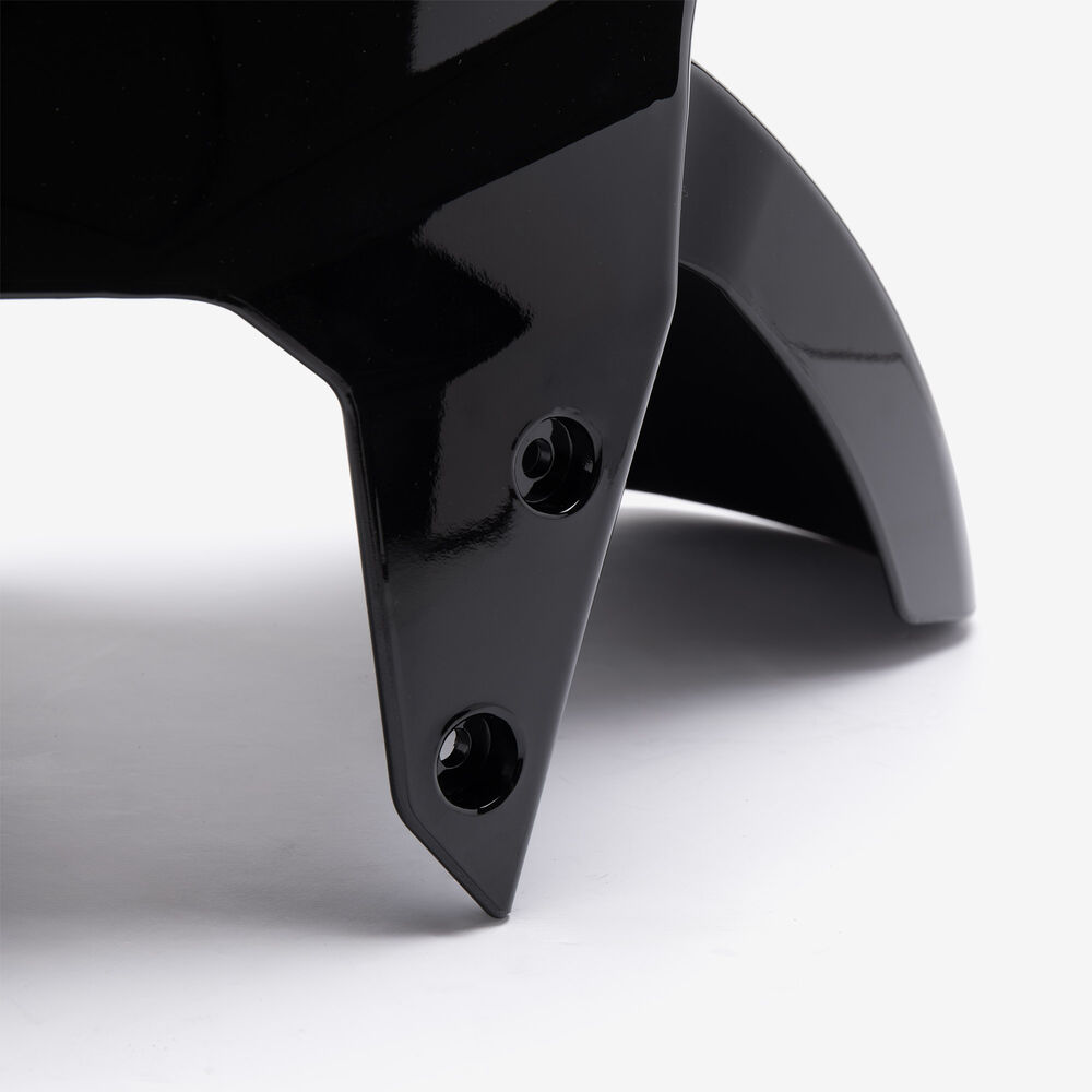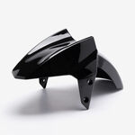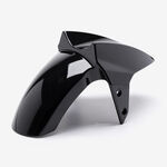 The front mudguard on a motorcycle is a panel mounted above the front wheel to protect the bike and rider from mud, water, and debris. It helps keep the front of the motorcycle cleaner and enhances rider safety by reducing the amount of spray. Made from materials like plastic or metal, the front mudguard is designed to endure road conditions and impacts.