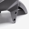 The front mudguard on a motorcycle is a panel mounted above the front wheel to protect the bike and rider from mud, water, and debris. It helps keep the front of the motorcycle cleaner and enhances rider safety by reducing the amount of spray. Made from materials like plastic or metal, the front mudguard is designed to endure road conditions and impacts.
