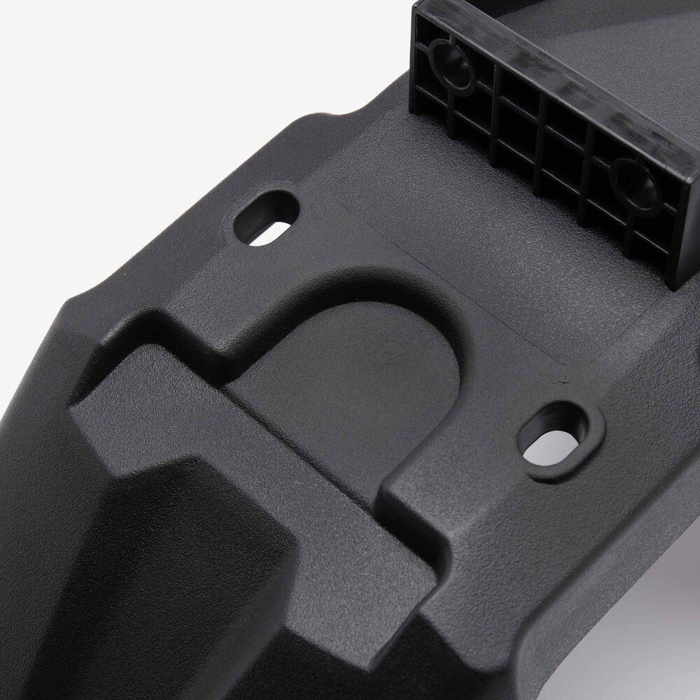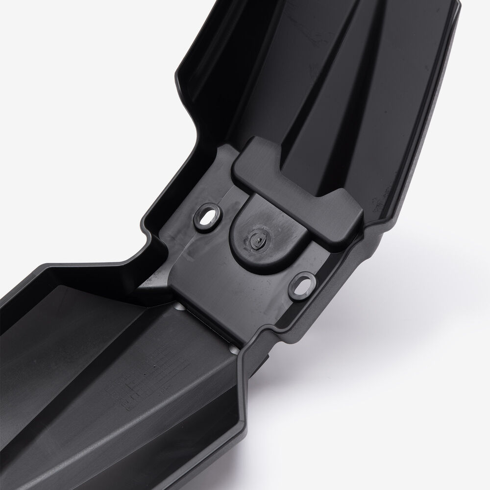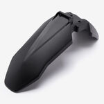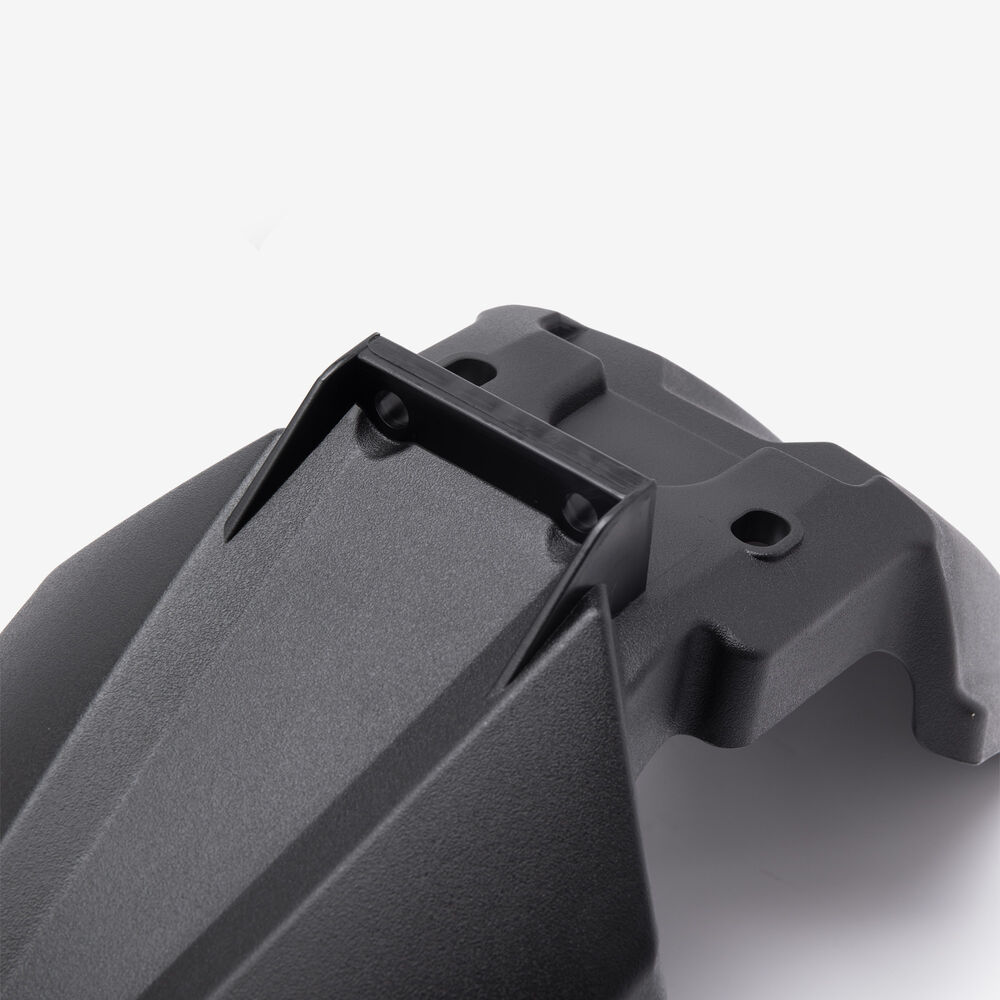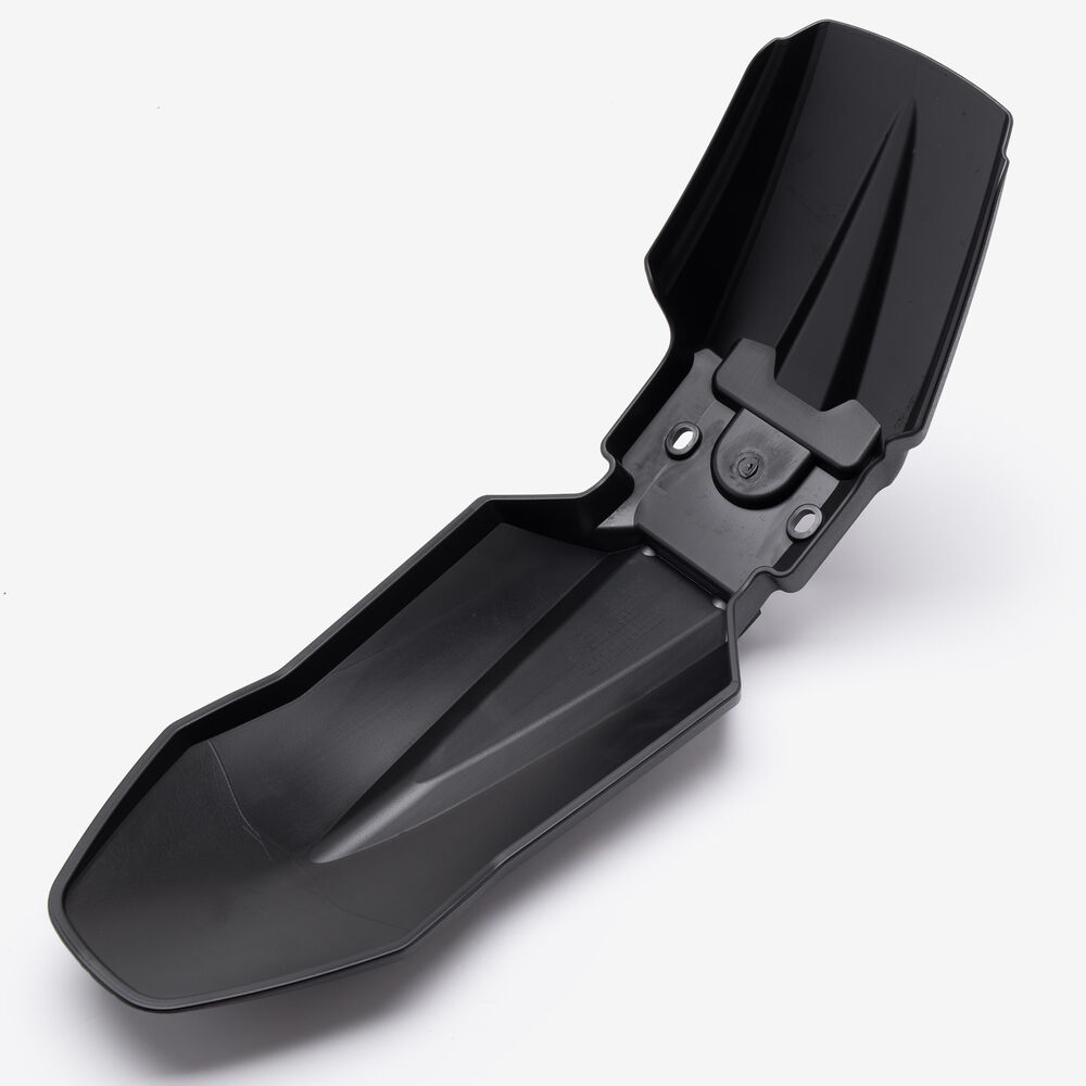 The front mudguard on a motorcycle is a panel mounted above the front wheel to protect the bike and rider from mud, water, and debris. It helps keep the front of the motorcycle cleaner and enhances rider safety by reducing the amount of spray. Made from materials like plastic or metal, the front mudguard is designed to endure road conditions and impacts.