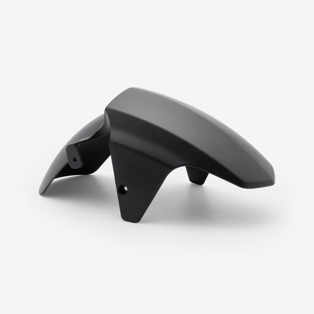 The front mudguard on a motorcycle is a panel mounted above the front wheel to protect the bike and rider from mud, water, and debris. It helps keep the front of the motorcycle cleaner and enhances rider safety by reducing the amount of spray. Made from materials like plastic or metal, the front mudguard is designed to endure road conditions and impacts.