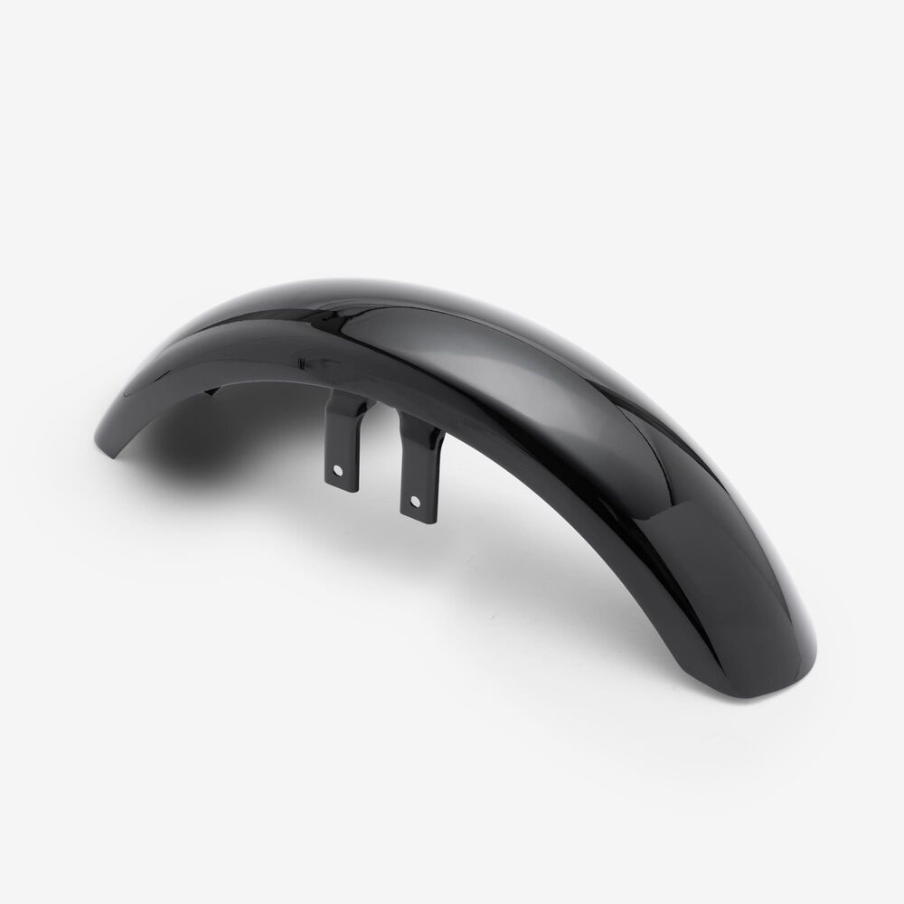 The front mudguard on a motorcycle is a panel mounted above the front wheel to protect the bike and rider from mud, water, and debris. It helps keep the front of the motorcycle cleaner and enhances rider safety by reducing the amount of spray. Made from materials like plastic or metal, the front mudguard is designed to endure road conditions and impacts.