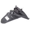 The rear mudguard on a motorcycle is a protective panel mounted above the rear wheel to shield the bike and rider from water, mud, and debris kicked up by the tire. It helps keep the rear of the motorcycle cleaner and improves visibility by preventing splashes.