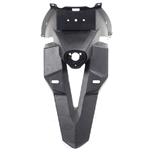 The rear mudguard on a motorcycle is a protective panel mounted above the rear wheel to shield the bike and rider from water, mud, and debris kicked up by the tire. It helps keep the rear of the motorcycle cleaner and improves visibility by preventing splashes.