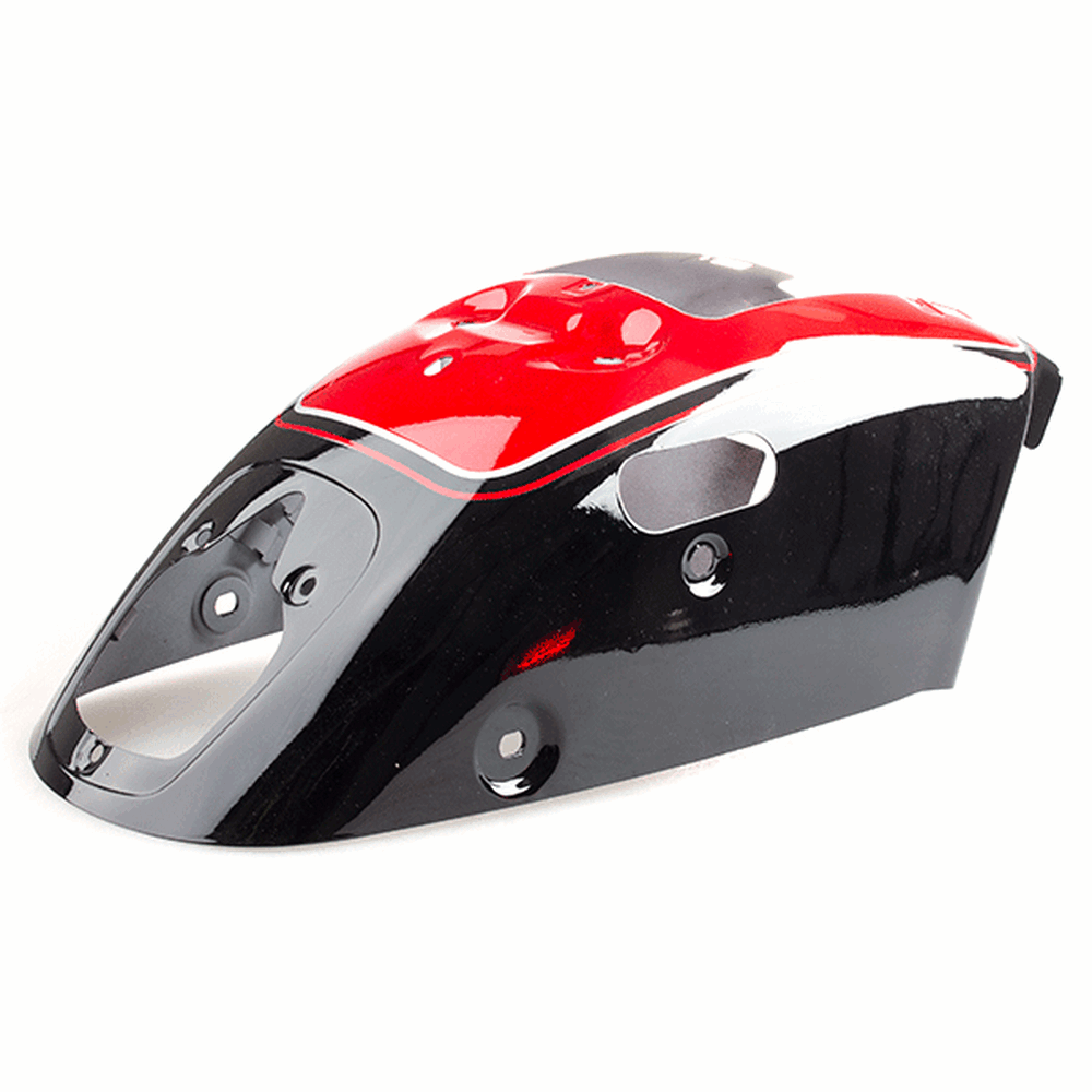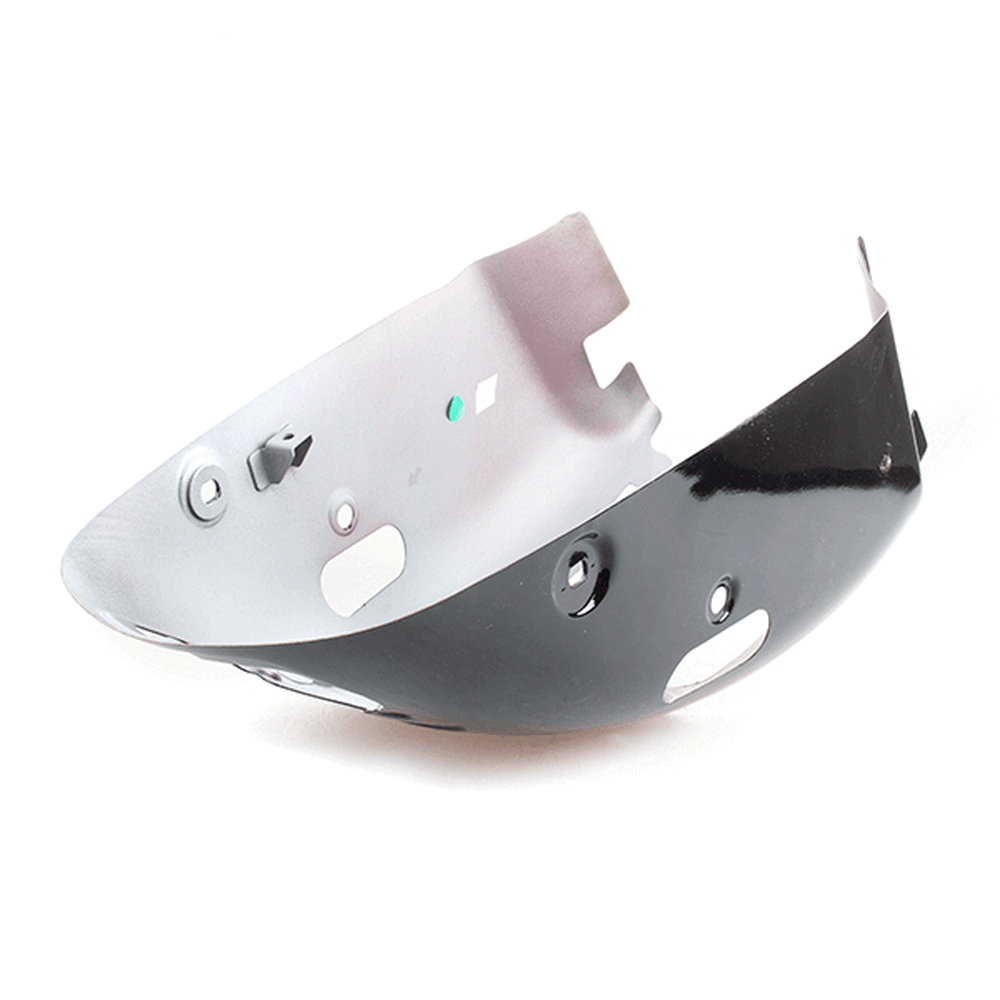 The rear mudguard on a motorcycle is a protective panel mounted above the rear wheel to shield the bike and rider from water, mud, and debris kicked up by the tire. It helps keep the rear of the motorcycle cleaner and improves visibility by preventing splashes.