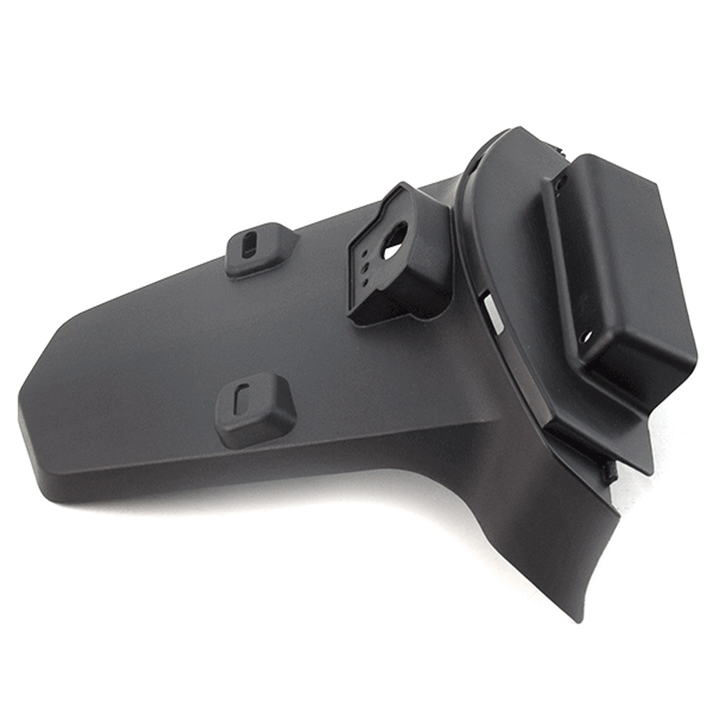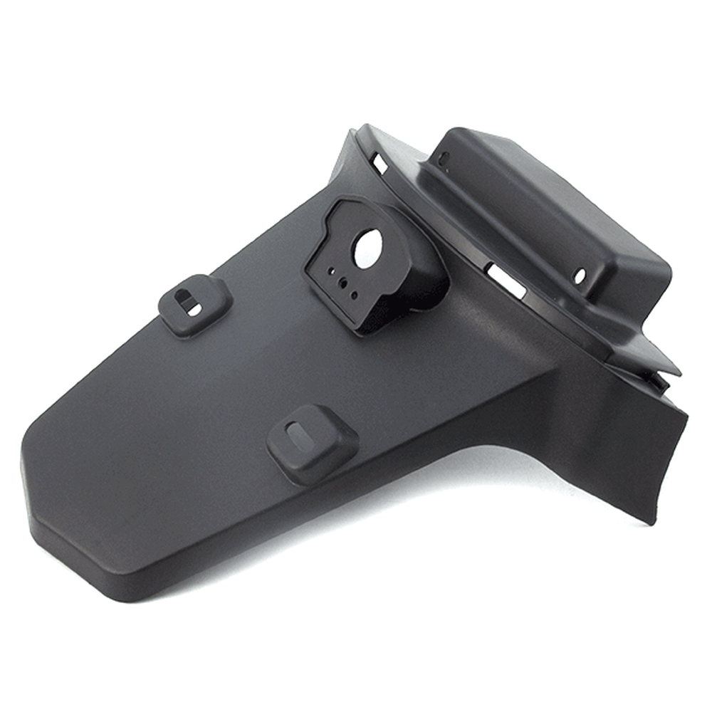 The rear mudguard on a motorcycle is a protective panel mounted above the rear wheel to shield the bike and rider from water, mud, and debris kicked up by the tire. It helps keep the rear of the motorcycle cleaner and improves visibility by preventing splashes.