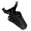 The rear mudguard on a motorcycle is a protective panel mounted above the rear wheel to shield the bike and rider from water, mud, and debris kicked up by the tire. It helps keep the rear of the motorcycle cleaner and improves visibility by preventing splashes.
