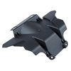 The rear mudguard on a motorcycle is a protective panel mounted above the rear wheel to shield the bike and rider from water, mud, and debris kicked up by the tire. It helps keep the rear of the motorcycle cleaner and improves visibility by preventing splashes.