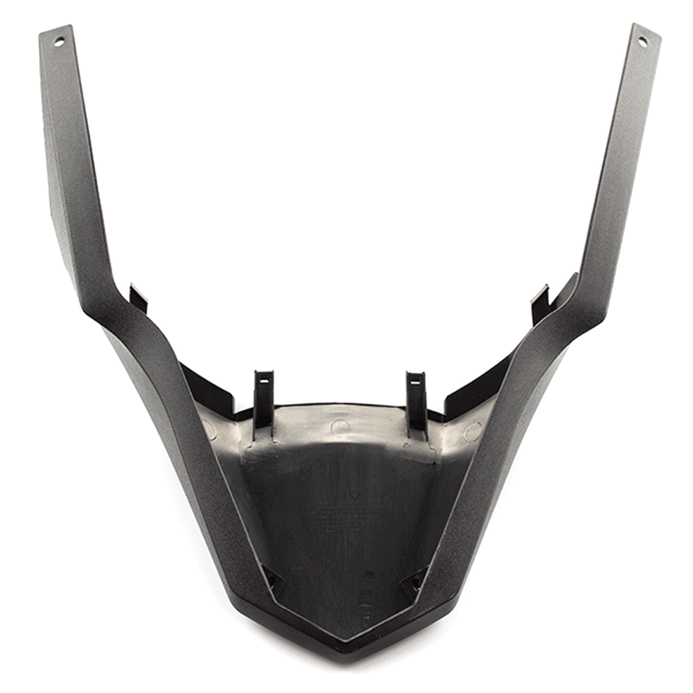 The rear mudguard on a motorcycle is a protective panel mounted above the rear wheel to shield the bike and rider from water, mud, and debris kicked up by the tire. It helps keep the rear of the motorcycle cleaner and improves visibility by preventing splashes.