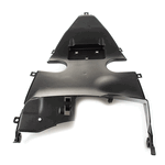 The rear mudguard on a motorcycle is a protective panel mounted above the rear wheel to shield the bike and rider from water, mud, and debris kicked up by the tire. It helps keep the rear of the motorcycle cleaner and improves visibility by preventing splashes.