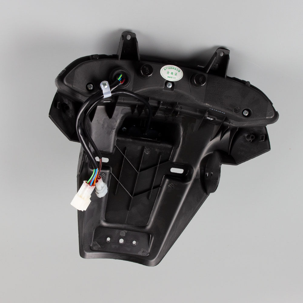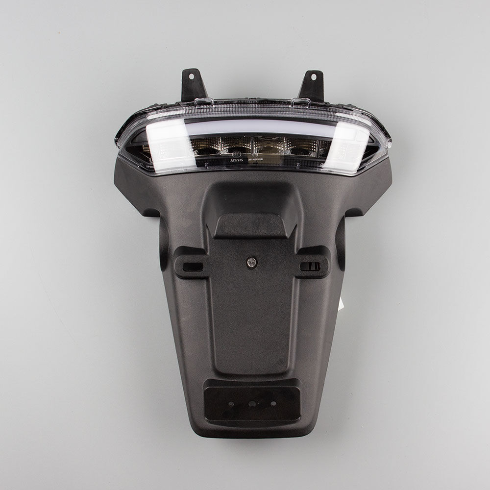 The rear mudguard on a motorcycle is a protective panel mounted above the rear wheel to shield the bike and rider from water, mud, and debris kicked up by the tire. It helps keep the rear of the motorcycle cleaner and improves visibility by preventing splashes.