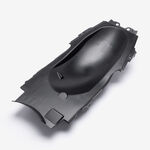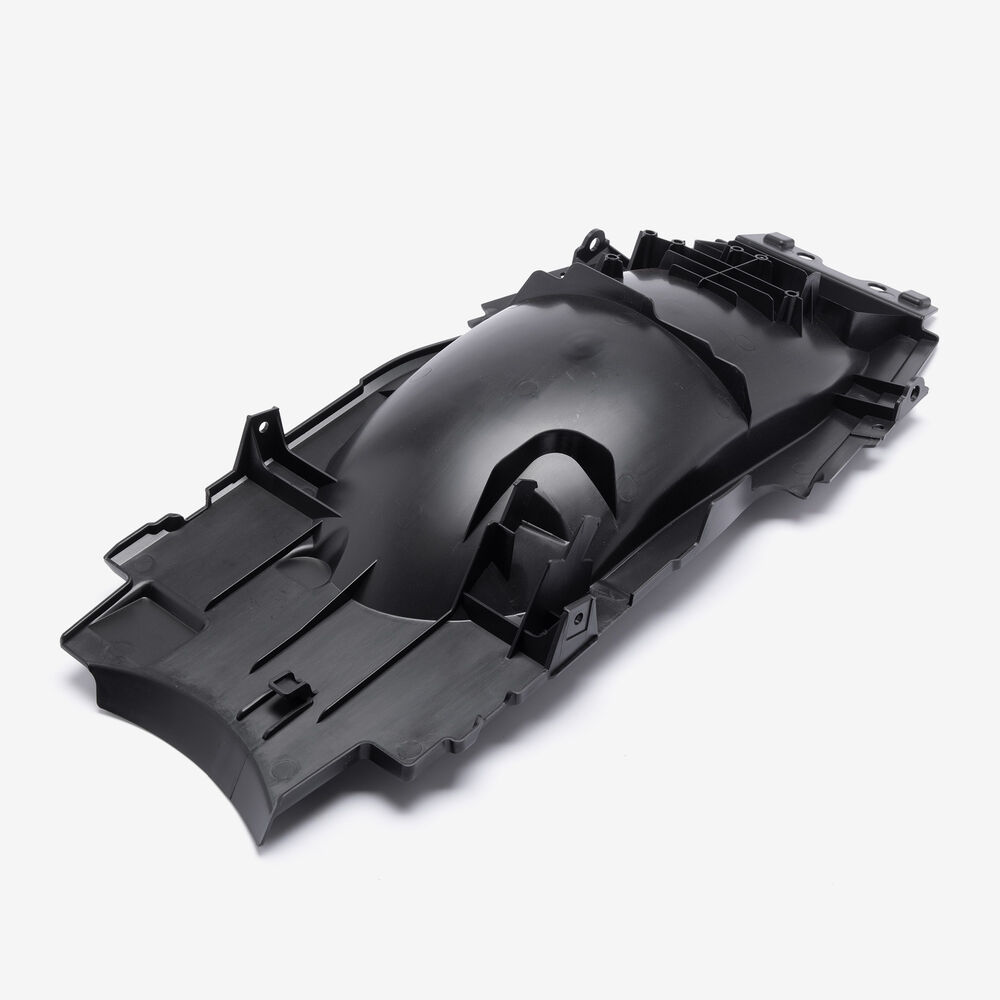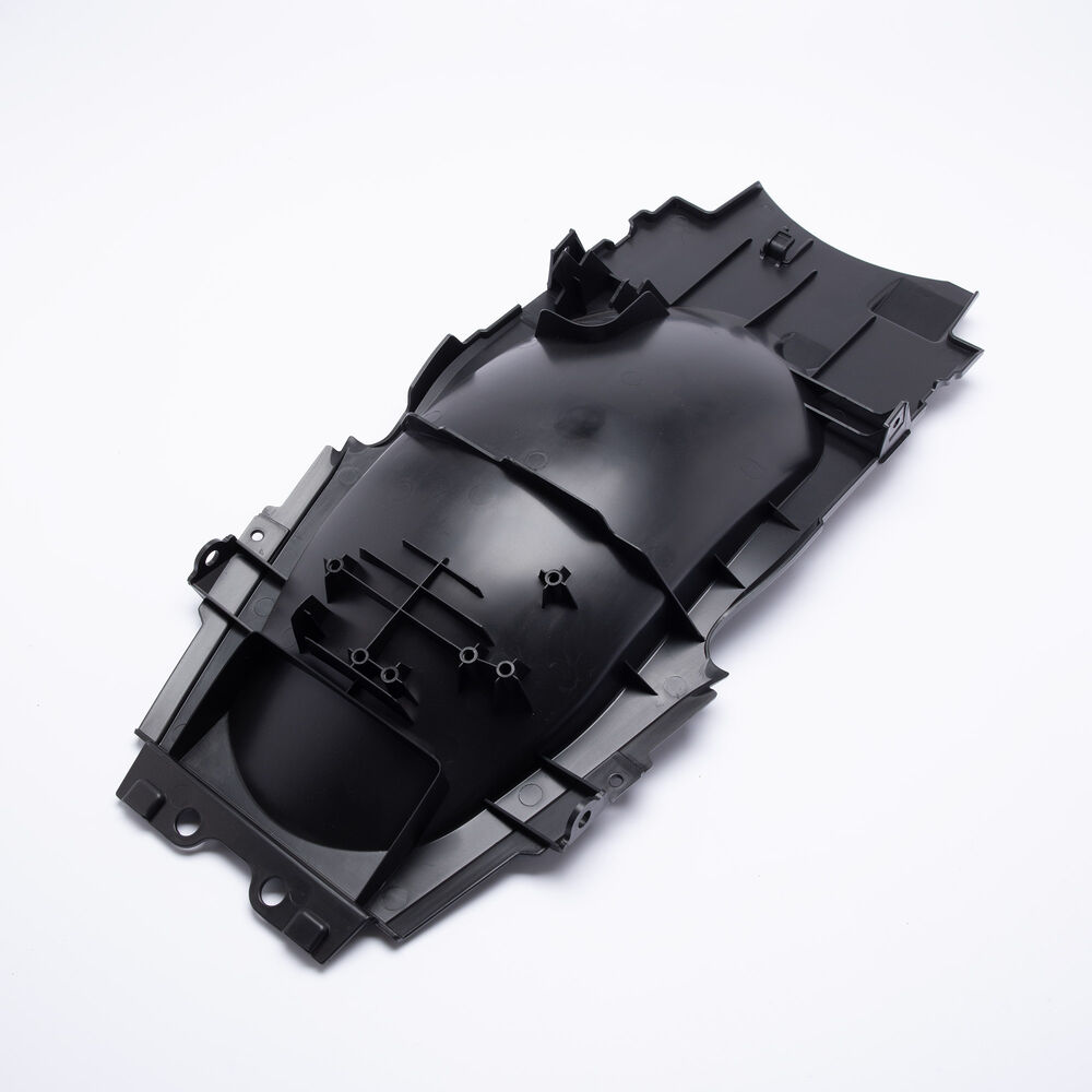 The rear mudguard on a motorcycle is a protective panel mounted above the rear wheel to shield the bike and rider from water, mud, and debris kicked up by the tire. It helps keep the rear of the motorcycle cleaner and improves visibility by preventing splashes.