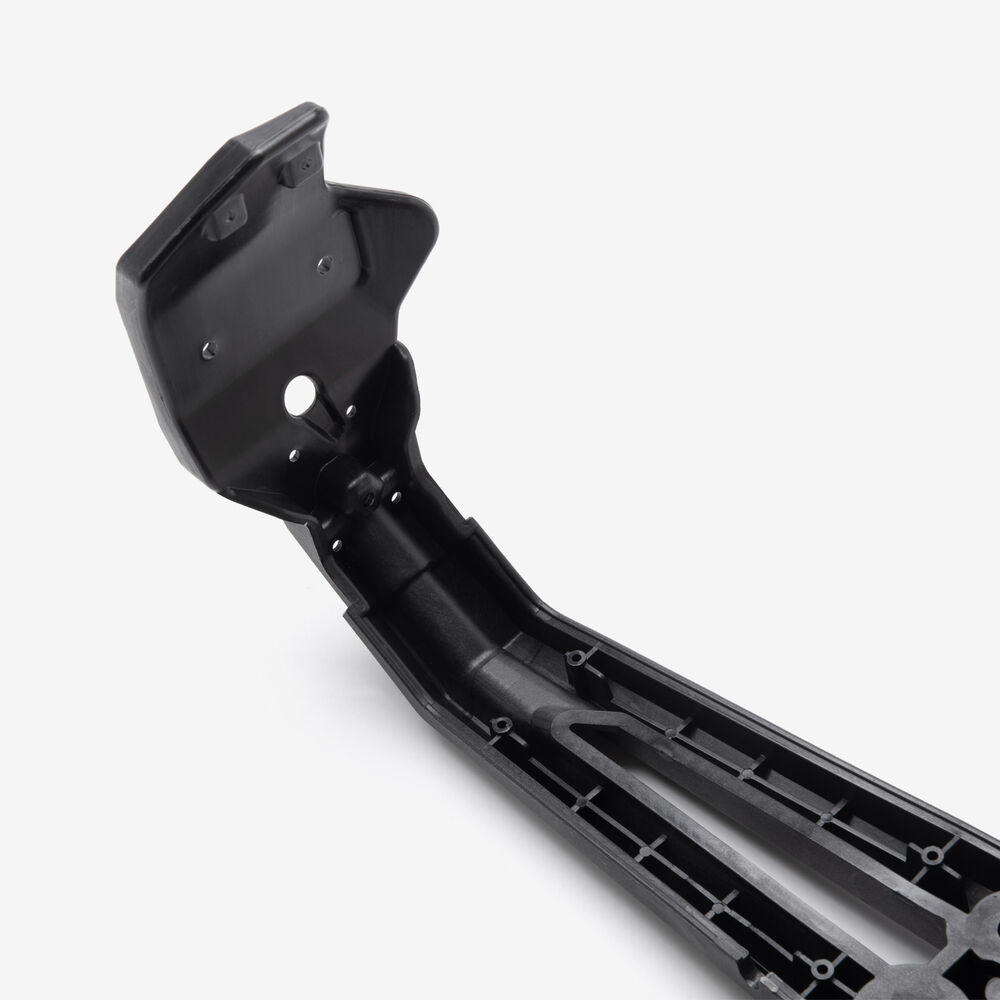 The rear mudguard on a motorcycle is a protective panel mounted above the rear wheel to shield the bike and rider from water, mud, and debris kicked up by the tire. It helps keep the rear of the motorcycle cleaner and improves visibility by preventing splashes.