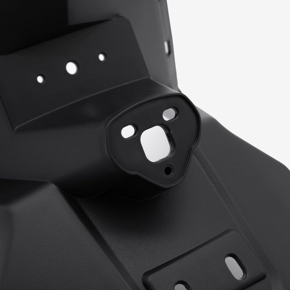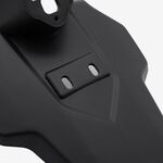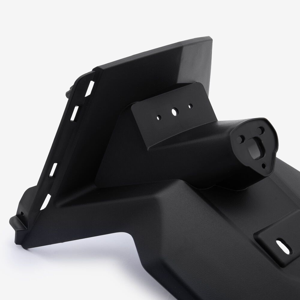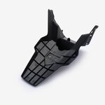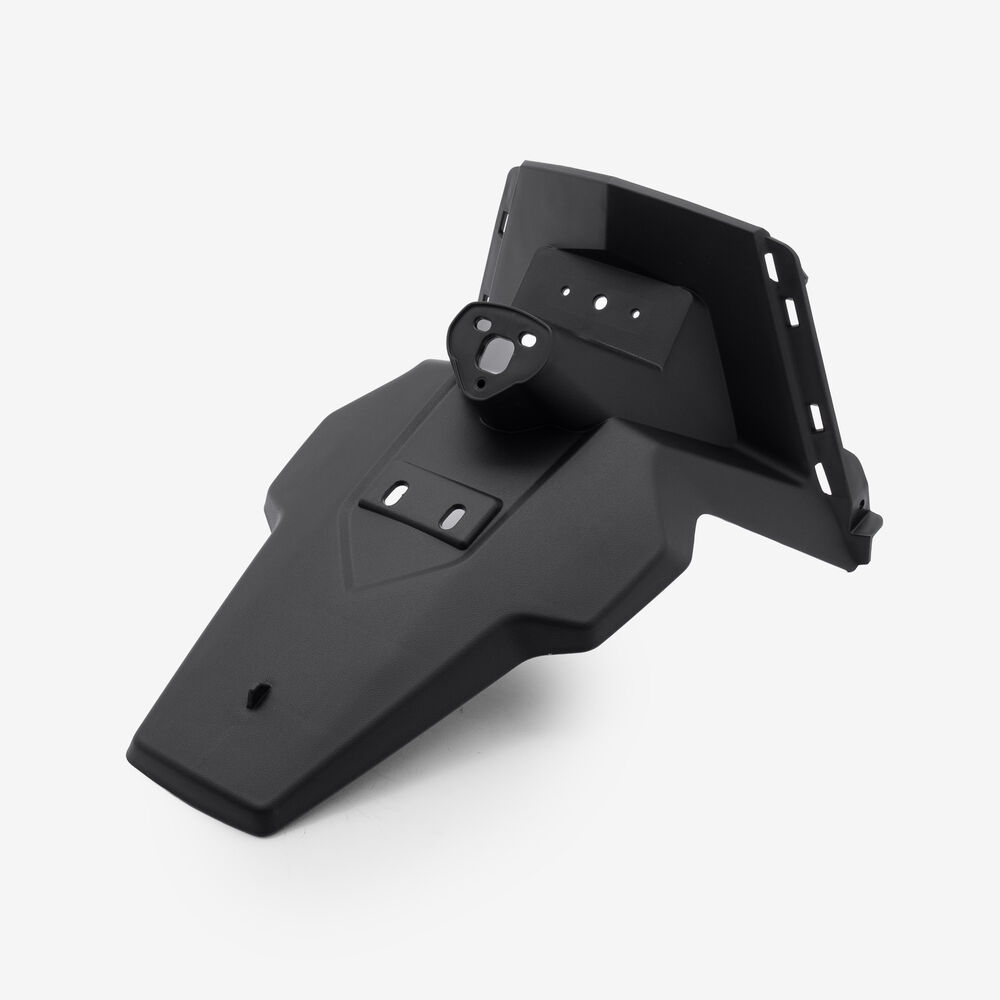The rear mudguard on a motorcycle is a protective panel mounted above the rear wheel to shield the bike and rider from water, mud, and debris kicked up by the tire. It helps keep the rear of the motorcycle cleaner and improves visibility by preventing splashes.