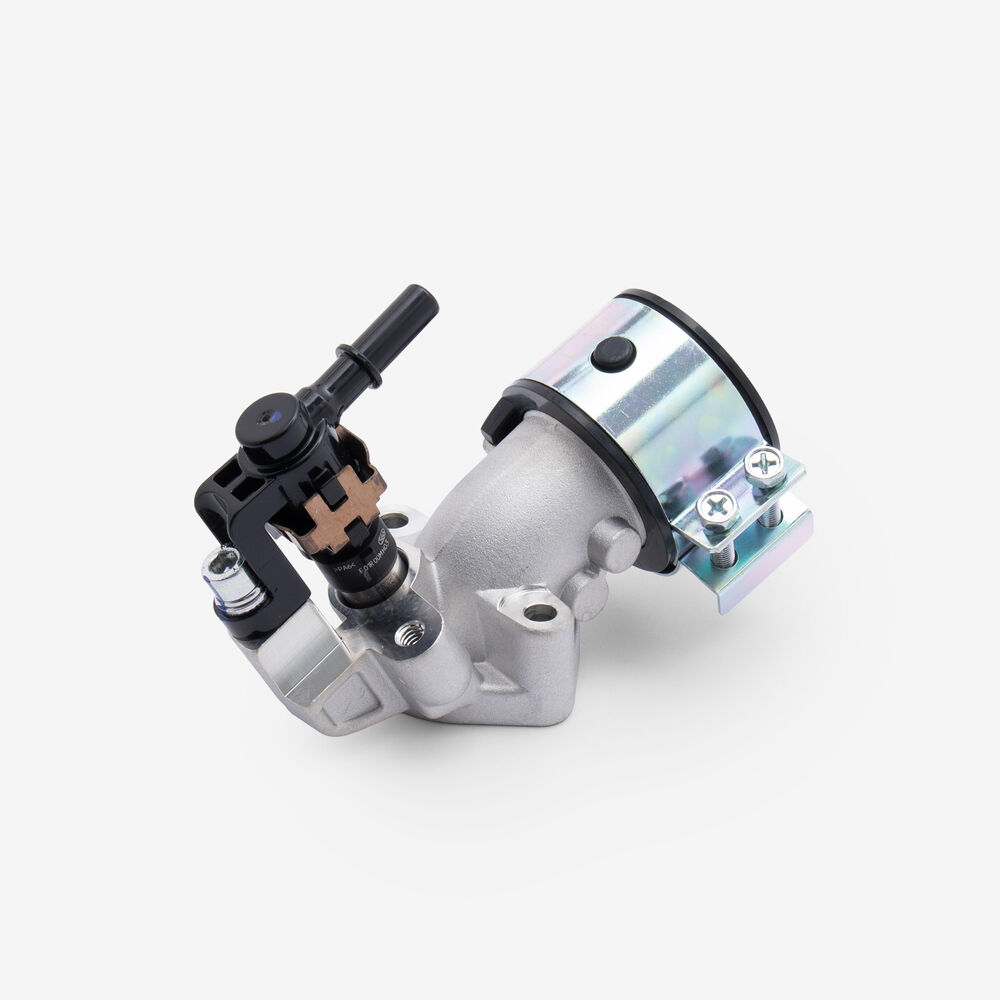 The inlet manifold on a motorcycle is a component that channels air and fuel from the throttle body to the engine’s combustion chambers. It helps ensure proper air-fuel mixture distribution, which is crucial for efficient engine performance and power delivery. Typically made from aluminum or composite materials, the inlet manifold is designed for durability and optimal airflow.