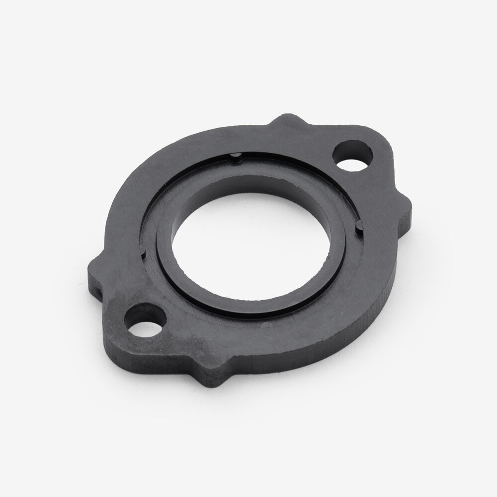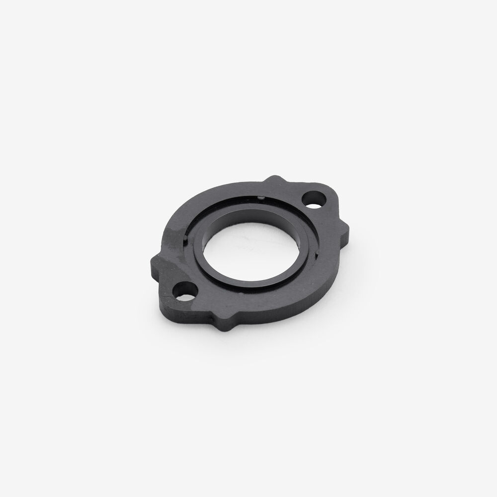 The inlet manifold spacer on a motorcycle is a component placed between the intake manifold and the engine. It helps to create space for adjusting the alignment of the manifold.