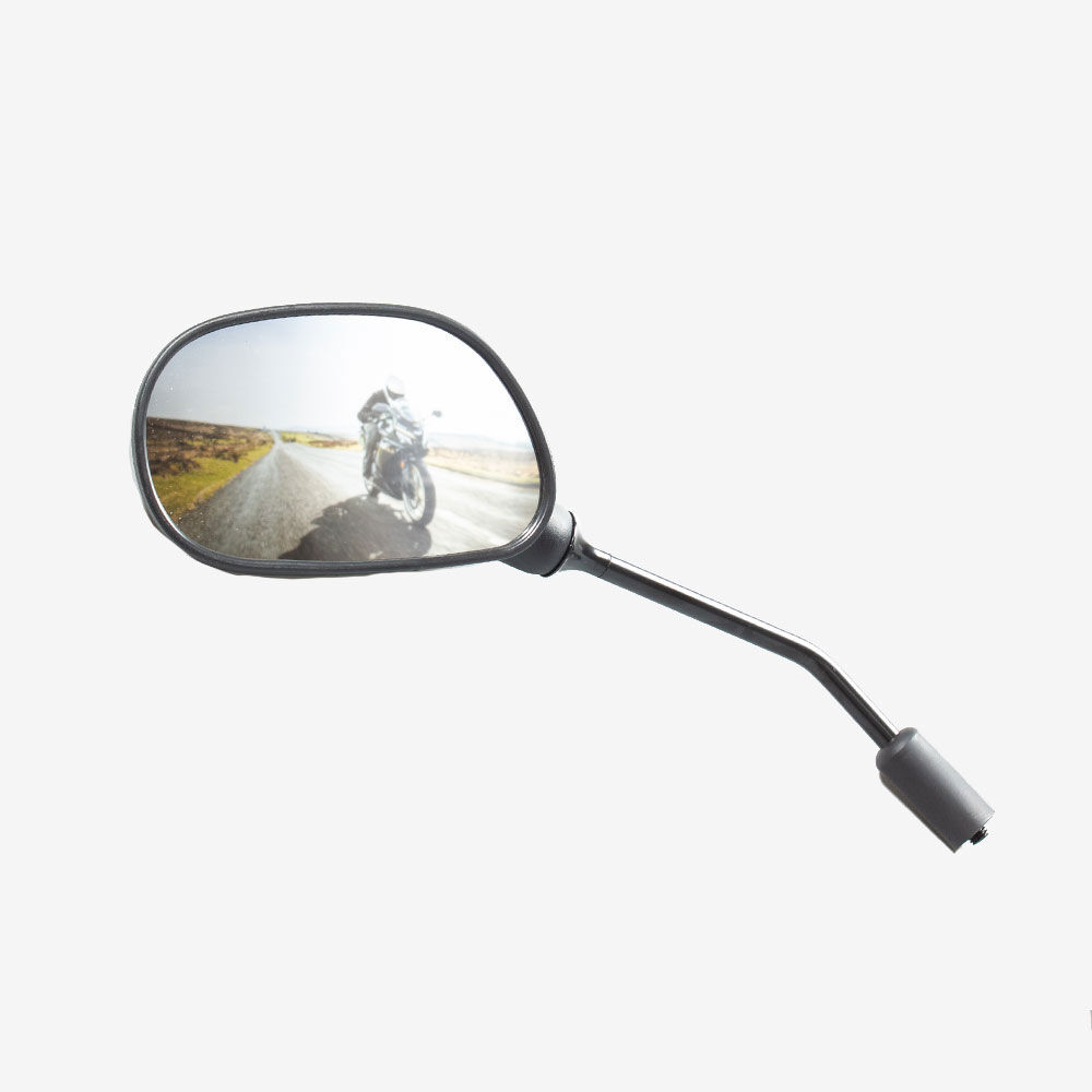 A mirror on a motorcycle is a reflective surface mounted on the handlebars or fairing, allowing the rider to see behind them. It enhances safety by providing visibility of the traffic and surroundings, aiding in lane changes and maneuvering. Motorcycle mirrors are typically made from glass and encased in durable plastic or metal housings.