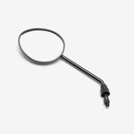 A mirror on a motorcycle is a reflective surface mounted on the handlebars or fairing, allowing the rider to see behind them. It enhances safety by providing visibility of the traffic and surroundings, aiding in lane changes and maneuvering. Motorcycle mirrors are typically made from glass and encased in durable plastic or metal housings.
