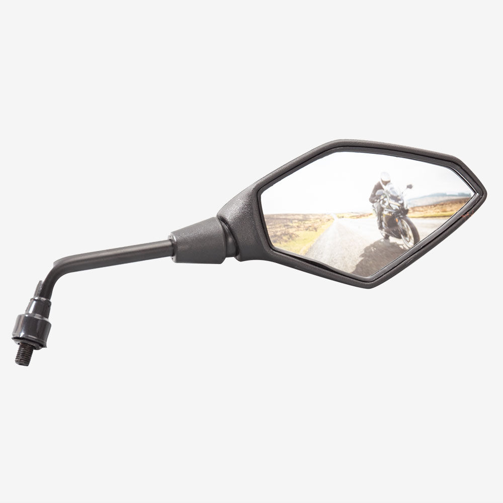 A mirror on a motorcycle is a reflective surface mounted on the handlebars or fairing, allowing the rider to see behind them. It enhances safety by providing visibility of the traffic and surroundings, aiding in lane changes and maneuvering. Motorcycle mirrors are typically made from glass and encased in durable plastic or metal housings.