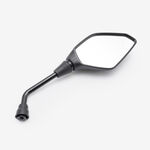 A mirror on a motorcycle is a reflective surface mounted on the handlebars or fairing, allowing the rider to see behind them. It enhances safety by providing visibility of the traffic and surroundings, aiding in lane changes and maneuvering. Motorcycle mirrors are typically made from glass and encased in durable plastic or metal housings.