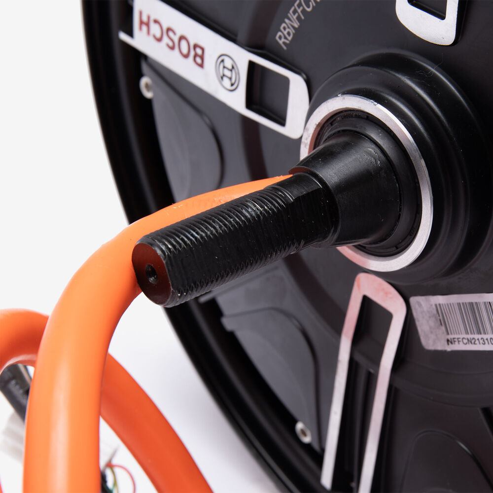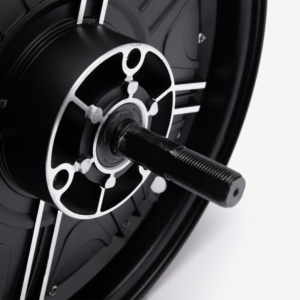 The motor in an electric vehicle (EV) is the component that converts electrical energy from the battery into mechanical energy to drive the vehicle. It provides propulsion by generating torque, which turns the rear wheel.