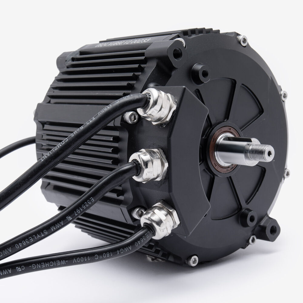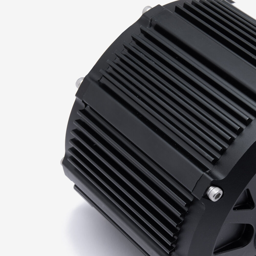 Code: MTR036 PLU: 40712 EAN: 5057645736103 Peak Power: 40000W Voltage Range: 48v - 104v Max Torque: 65Nm Max Stable Rotor RPM: 12000RPM Motor Configuration: 10 Poles and 12 Slots Winding Type: Dual Y Parallel Connection Stator and Rotor Stack Thickness: 80mm Sensing Method: NJDC 605 Encoder Kv Value: 85-90Kv Rated Power: Air Cooled: 15500W (Continuous run for 28 mins) Rated Power (cont): Water Cooled: 18000W (Continuous run for 28 mins Warranty: 2 Year Max Phase Current: 1100A Rated Phane Current (continuous run): 500A (35Nm) Waterproofing: IP67 Colour Options: Black/Red/Blue/Gold/Purple Weight: 14kg Type: Drivetrain Motor