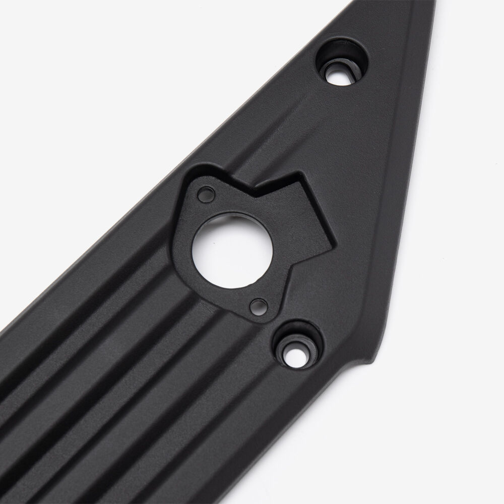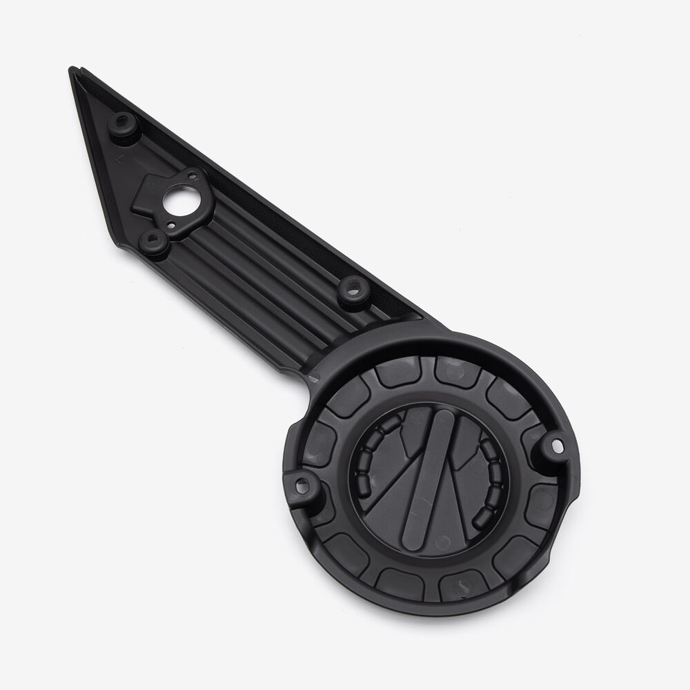 The motor housing/cover on a motorcycle is a protective casing that encloses the engine or specific engine components.