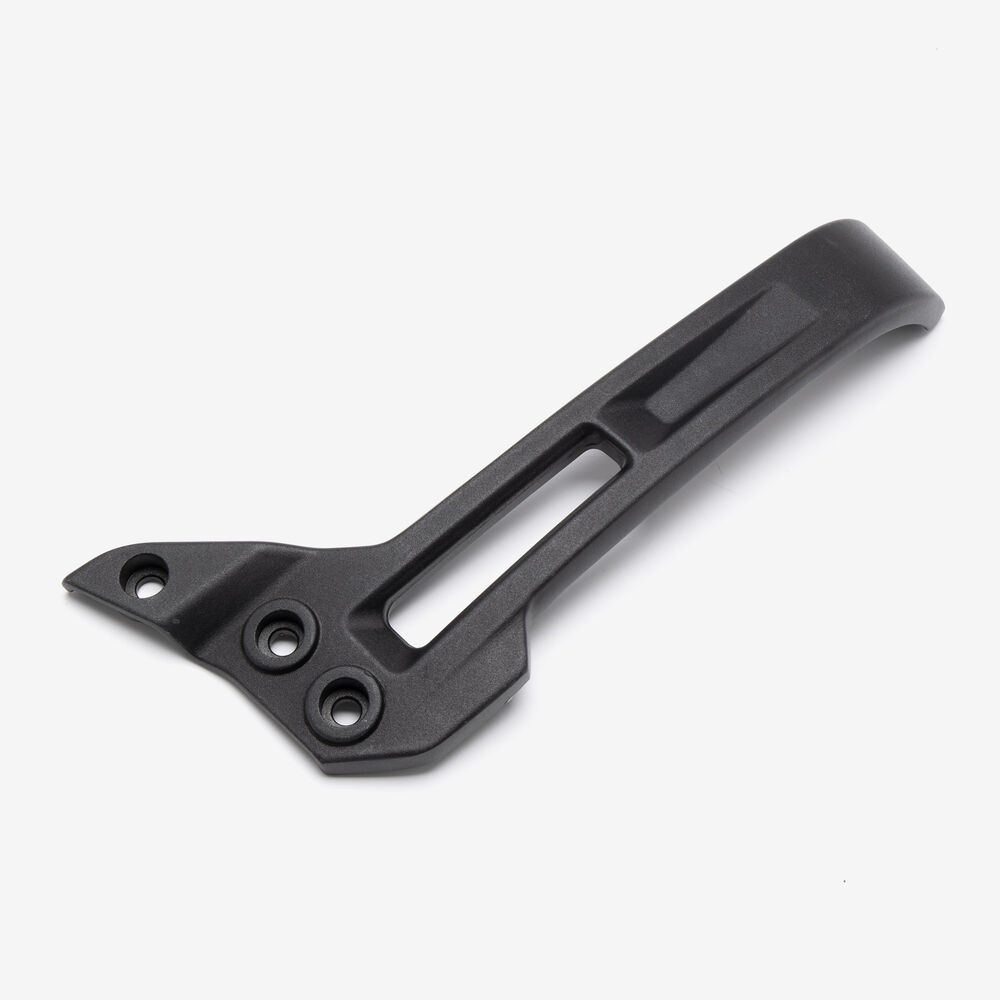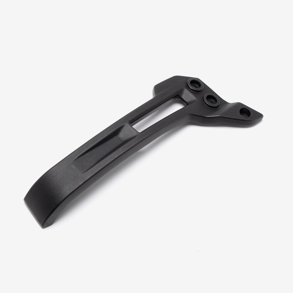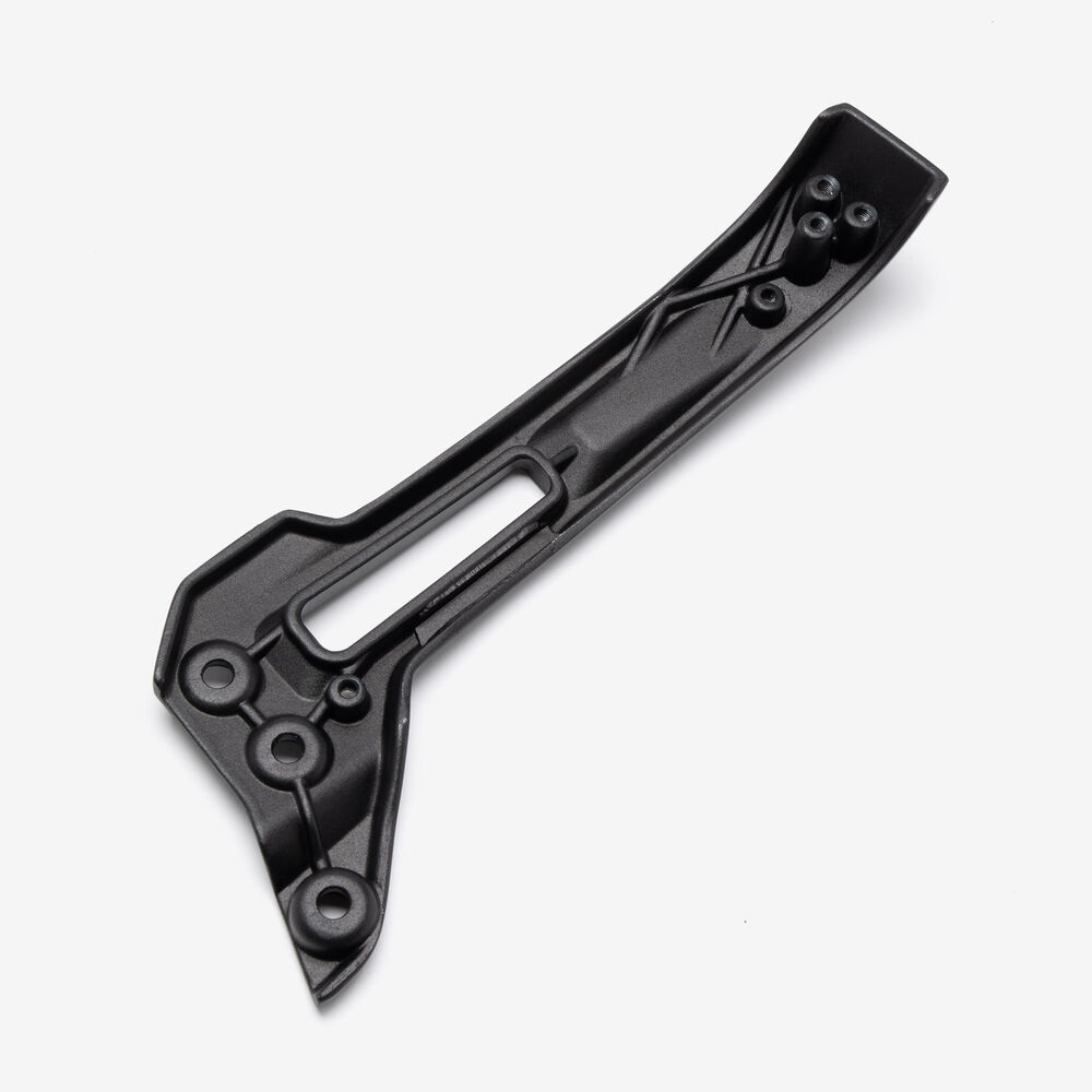 The number plate/license bracket on a motorcycle is a component designed to hold and display the vehicle's license plate. It attaches to the rear or front of the motorcycle, ensuring that the license plate is securely mounted and clearly visible.