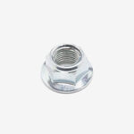A nut on a motorcycle is a fastener with a threaded hole used in conjunction with a bolt or screw to secure various components. It is essential for maintaining the integrity and stability of the motorcycle’s assembled parts.