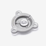 The oil filter cap on a motorcycle is a component that covers and seals the oil filter housing. It ensures that the oil filter is securely held in place and that the engine oil remains contained within the system. Made from metal or durable plastic, the oil filter cap is designed to maintain a tight seal and withstand engine temperatures and pressures, preventing leaks and ensuring proper filtration.